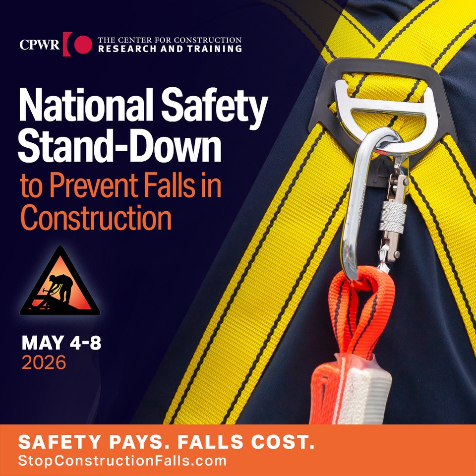 The 13th annual National Safety Stand-Down to Prevent Falls in Construction will take place on May 4th-8th, 2026. In order to make participating in the event as easy as possible, we’ve gathered key resources in one location. Use the links below to promote your event, plan your event, and share resources at your event.